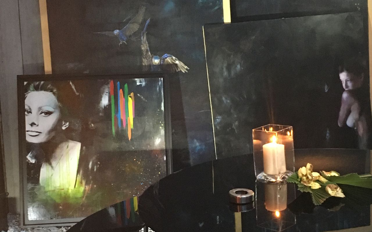 Ho realizzato per la Maison Trussardi, 3 quadri che sono stati oggetto dello spot pubblicitario per il profumo Riflesso, una prima versione base, una seconda intermedia e una terza finale.